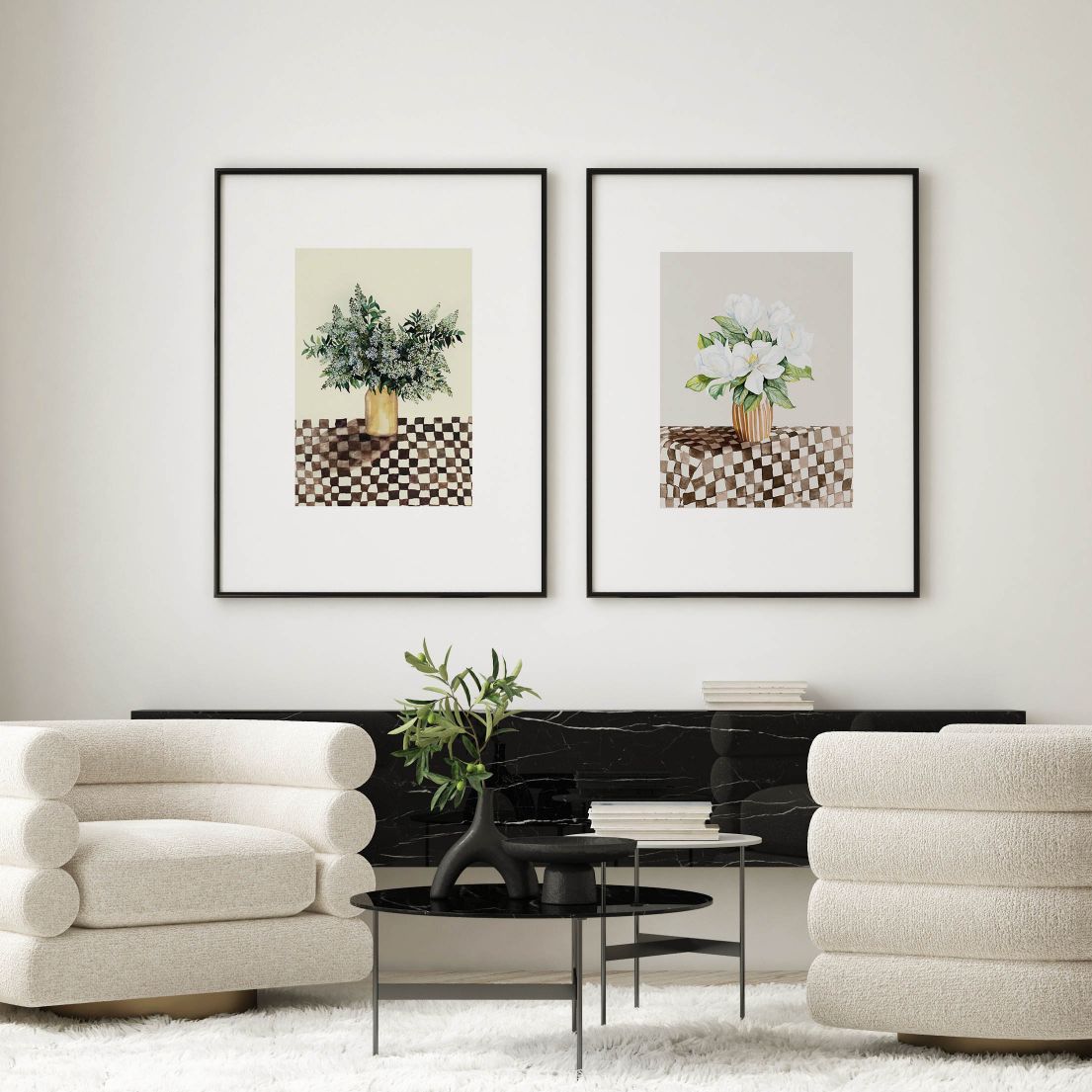 Our Hazel Pair is one of our vibrant floral pieces, infused with pops of colour, to brighten up your walls. Hazel Pair is a set of floral artworks which includes: French Hydrangeas Vase, Magnolia Vase. Uniquely designed by Leden, this piece is crafted to complement our modern interiors.