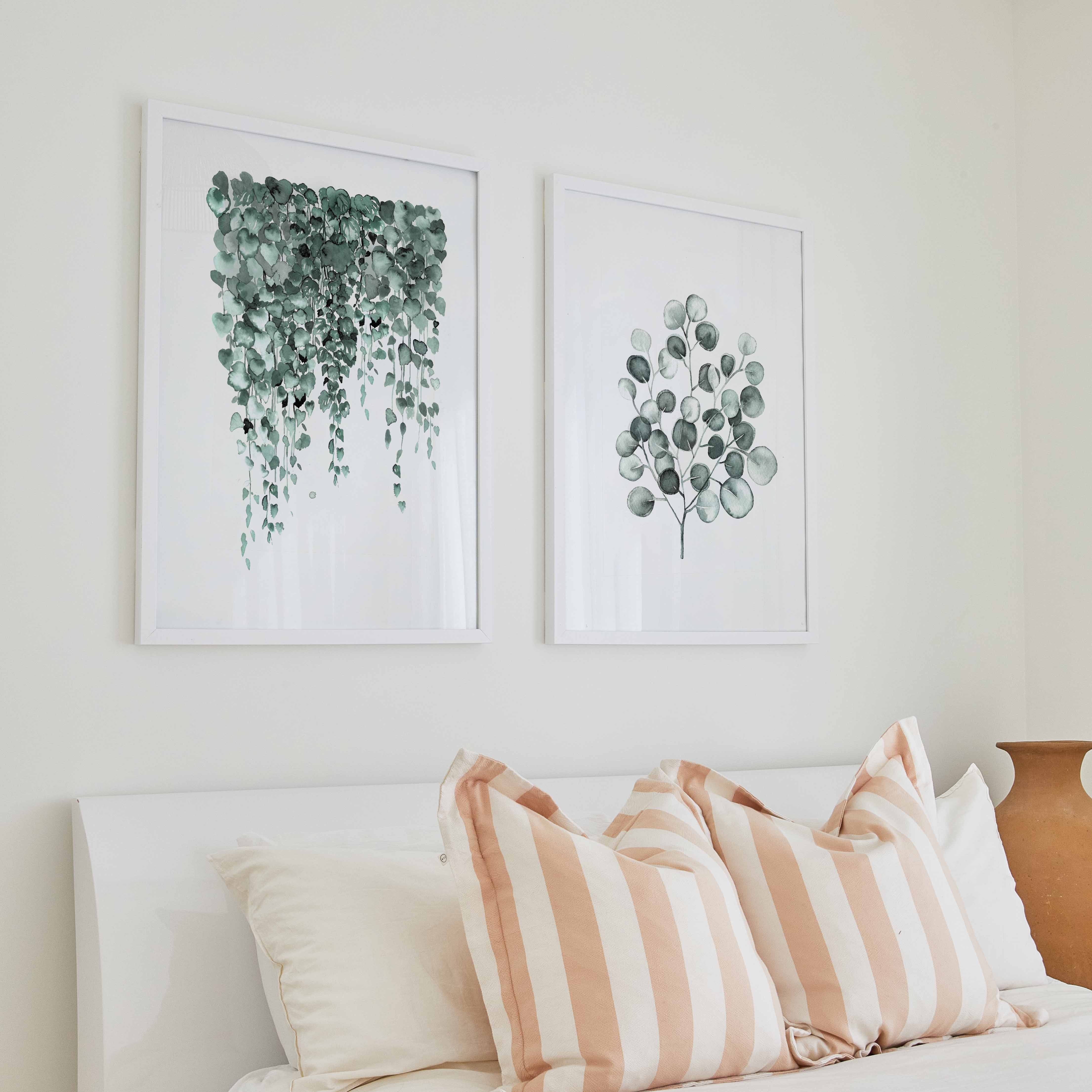 Our beautiful botanical sets are ideal for blending a touch of greenery, bringing a sense of calm to your interior space. Our Paradise Pair is a set of botanic artworks. This pair includes: Falling Leaves, Eucalyptus Uniquely designed by Leden., crafted to elevate any interior space