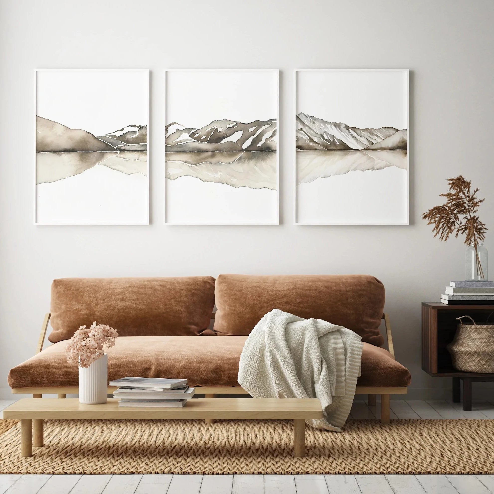 Our Golden Te Anau Triplet is an ode to some of our most incredible mountains and landscapes. Gentle palettes and soft defining shapes, captured through watercolour.. This triplet includes: Golden Te Anau I, Golden Te Anau II, Golden Te Anau III Uniquely designed by Leden, this piece is crafted to create the perfect backdrop for a range of interiors.