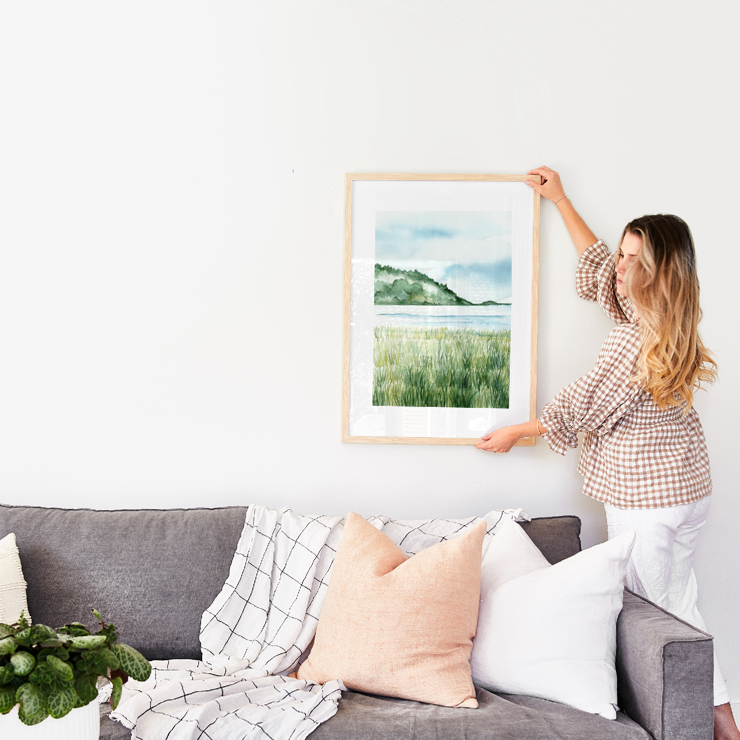 Our frames are locally made in Auckland and Melbourne from sustainably sourced wood and are available in three colours. We use a clear glass, and a shatter-proof acrylic for A0 and above.