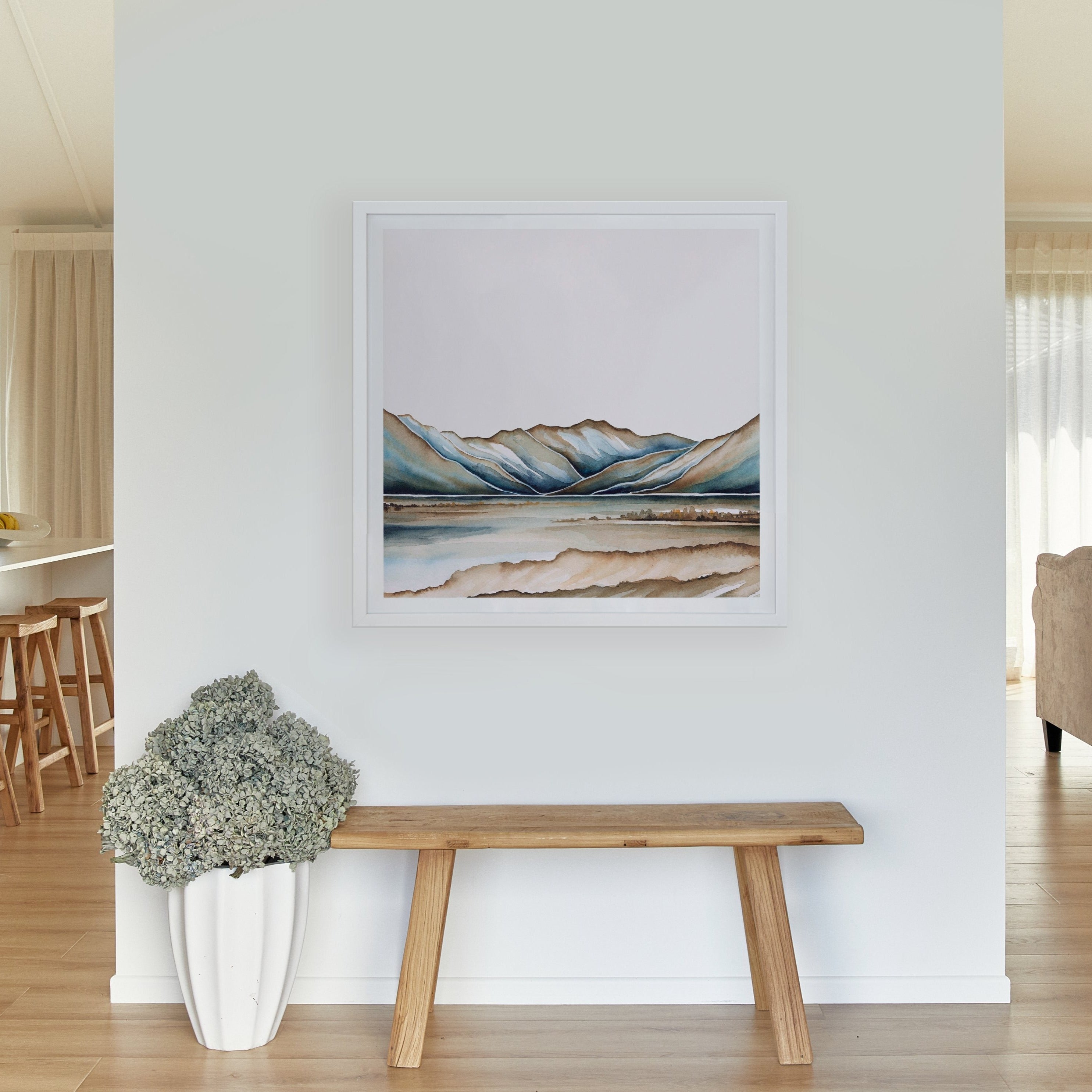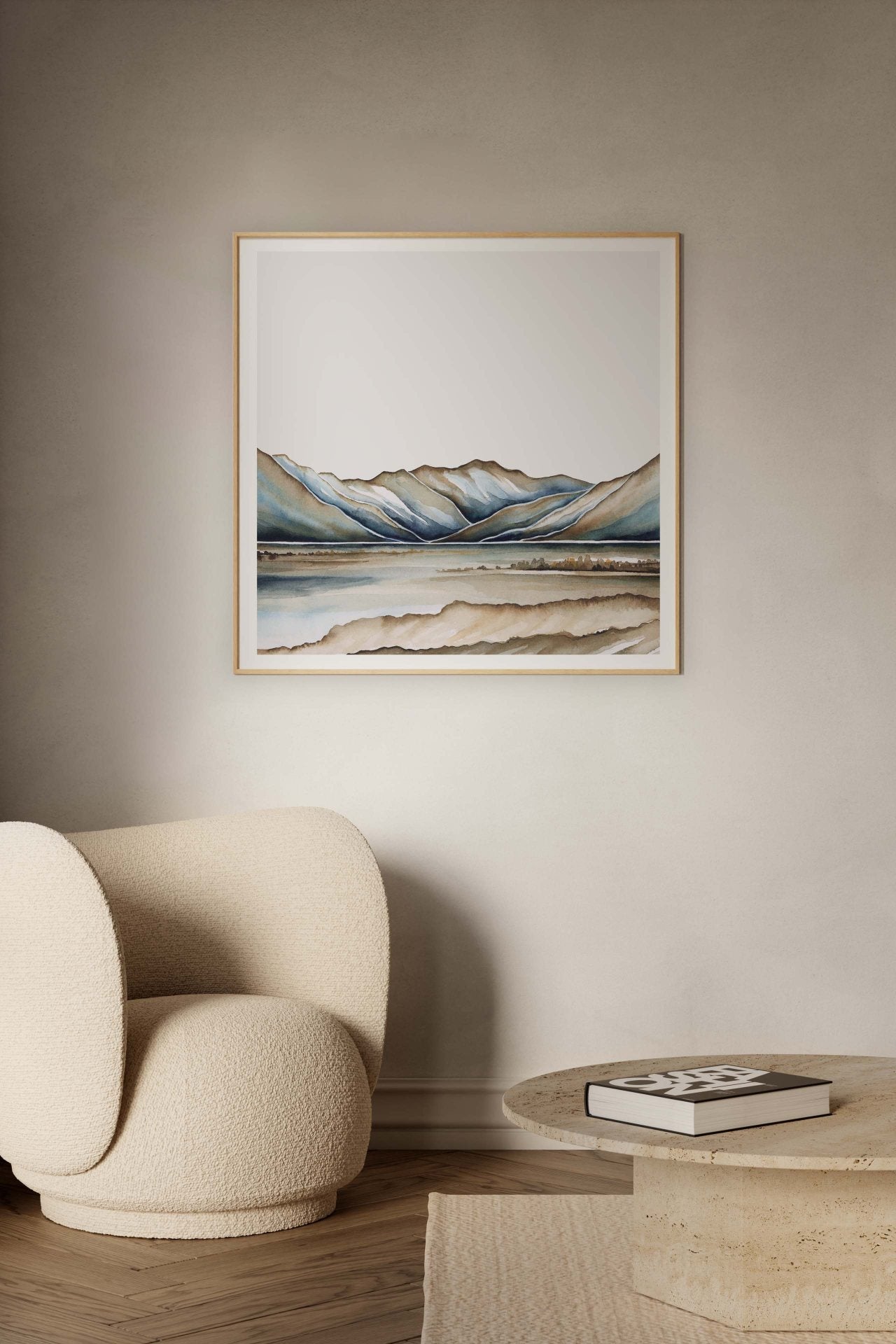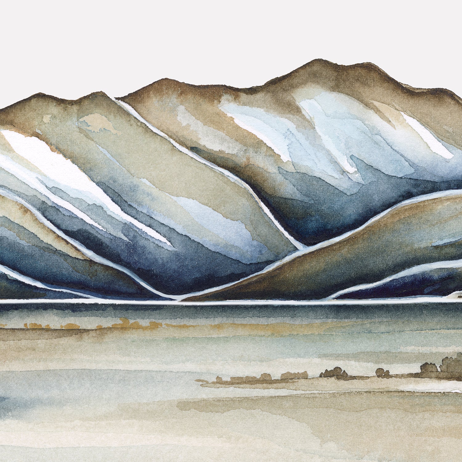 Discover the tranquillity of an off-the-beaten-path landscape, where the serenity of nature meets the clear, glacial embrace of a pristine lake. This breathtaking view melds shades of blues, whites, and browns, creating a soothing ambiance that will infuse your space with a sense of calm.