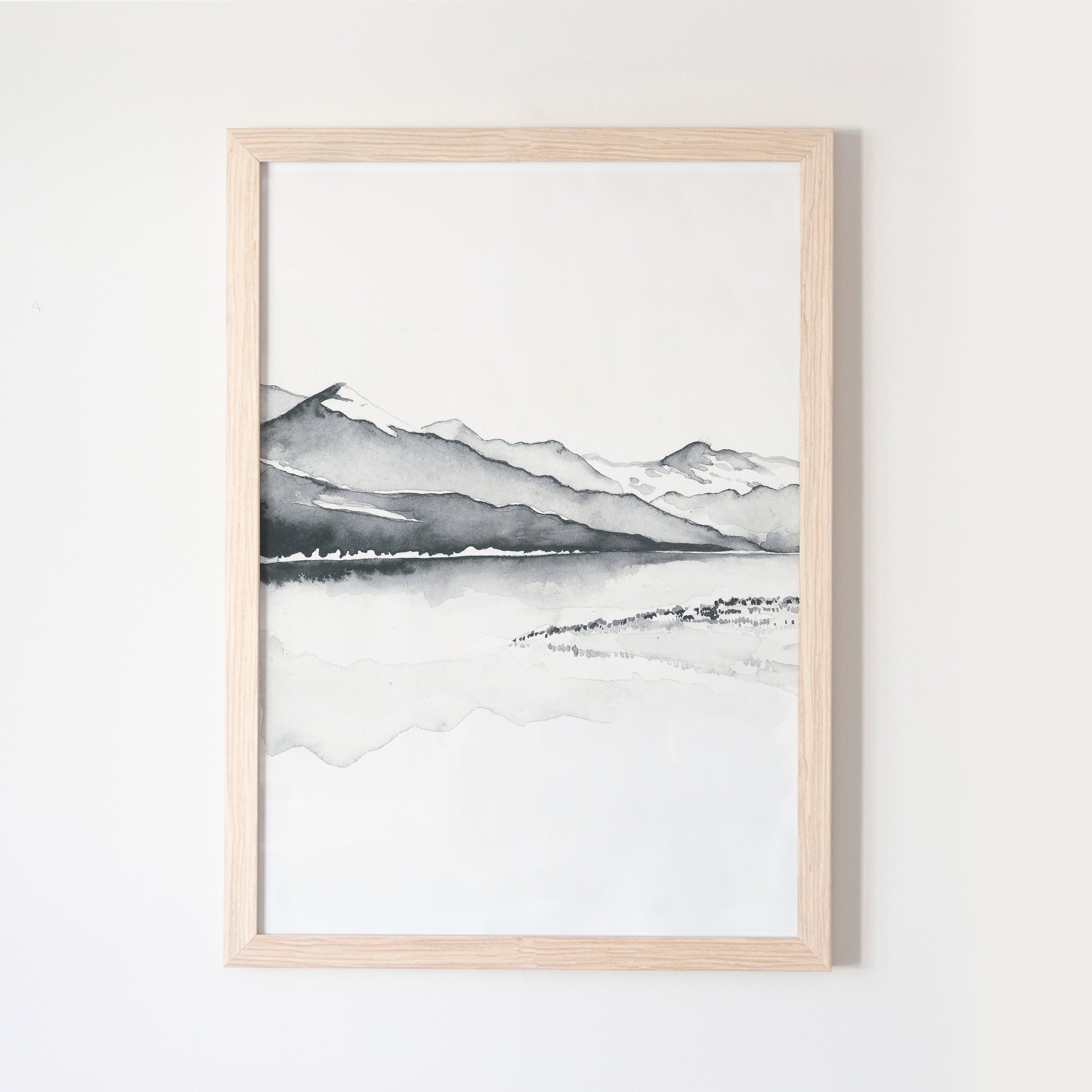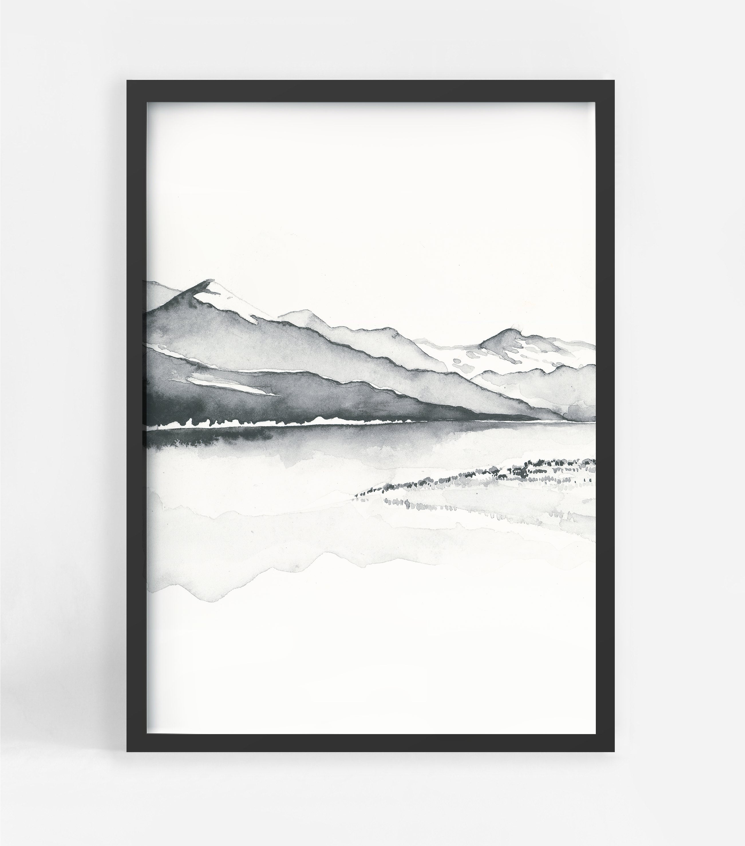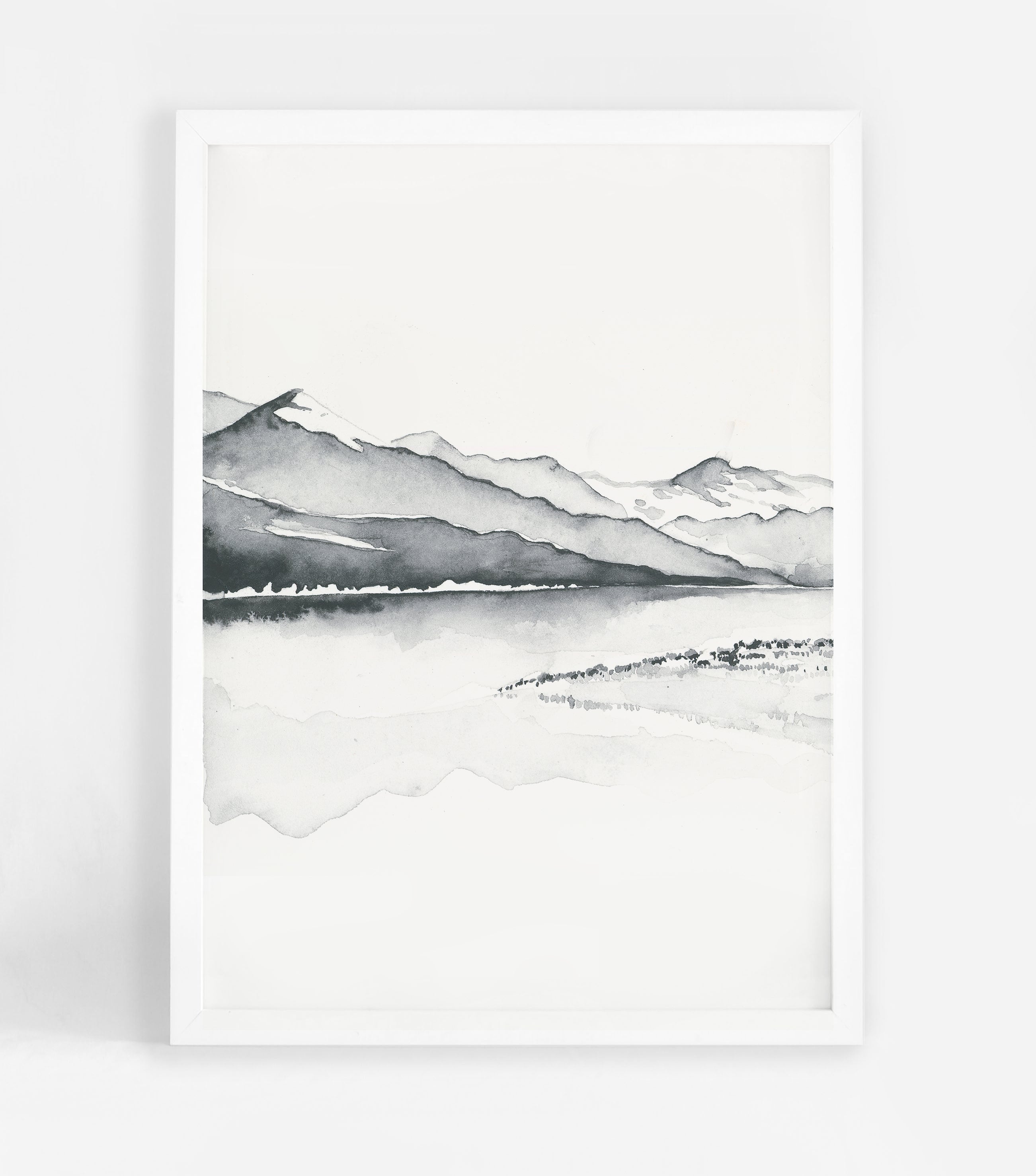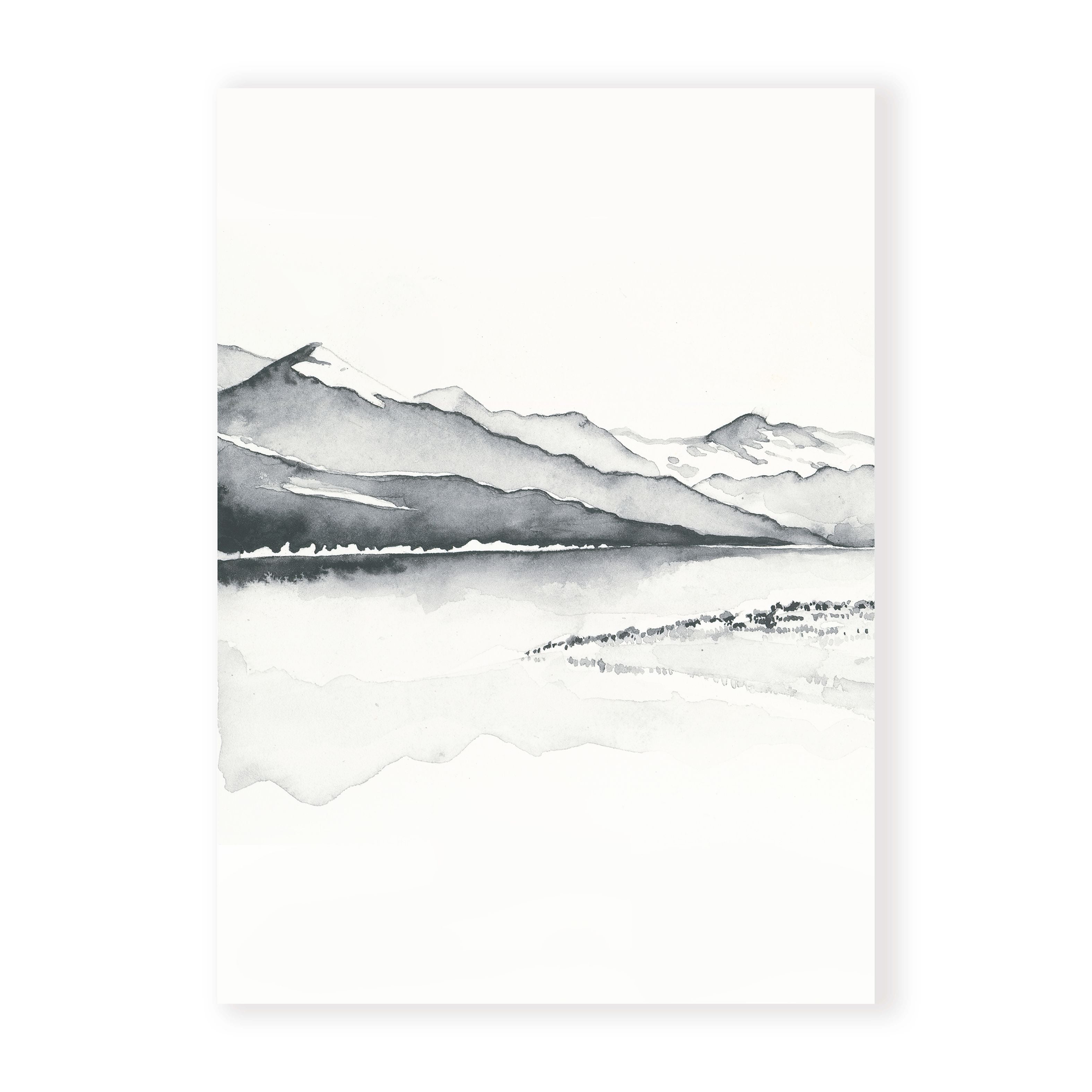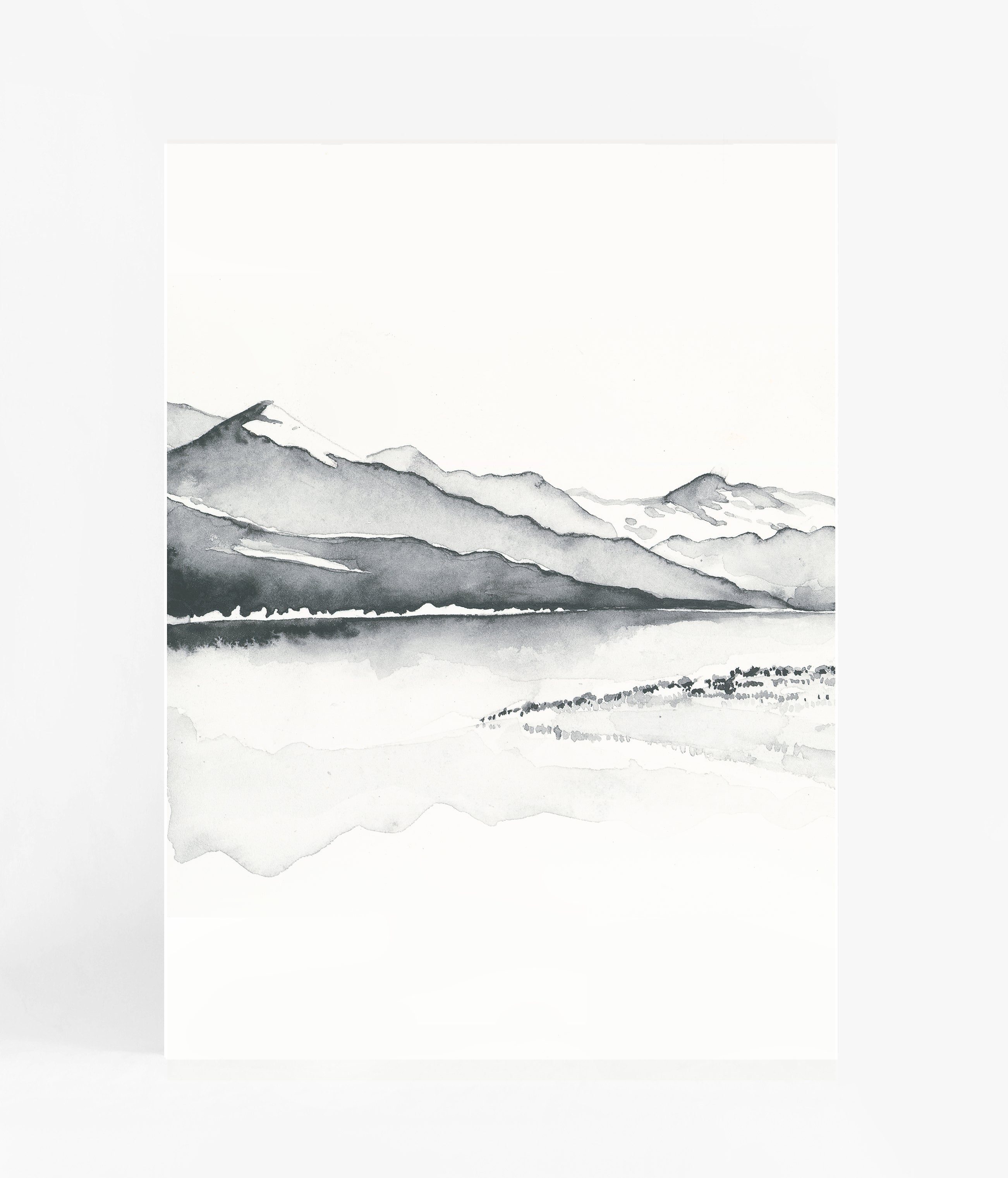 Our Lake Taupo I is an ode to some of our most incredible mountains and landscapes. Gentle palettes and soft defining shapes, captured through watercolour.