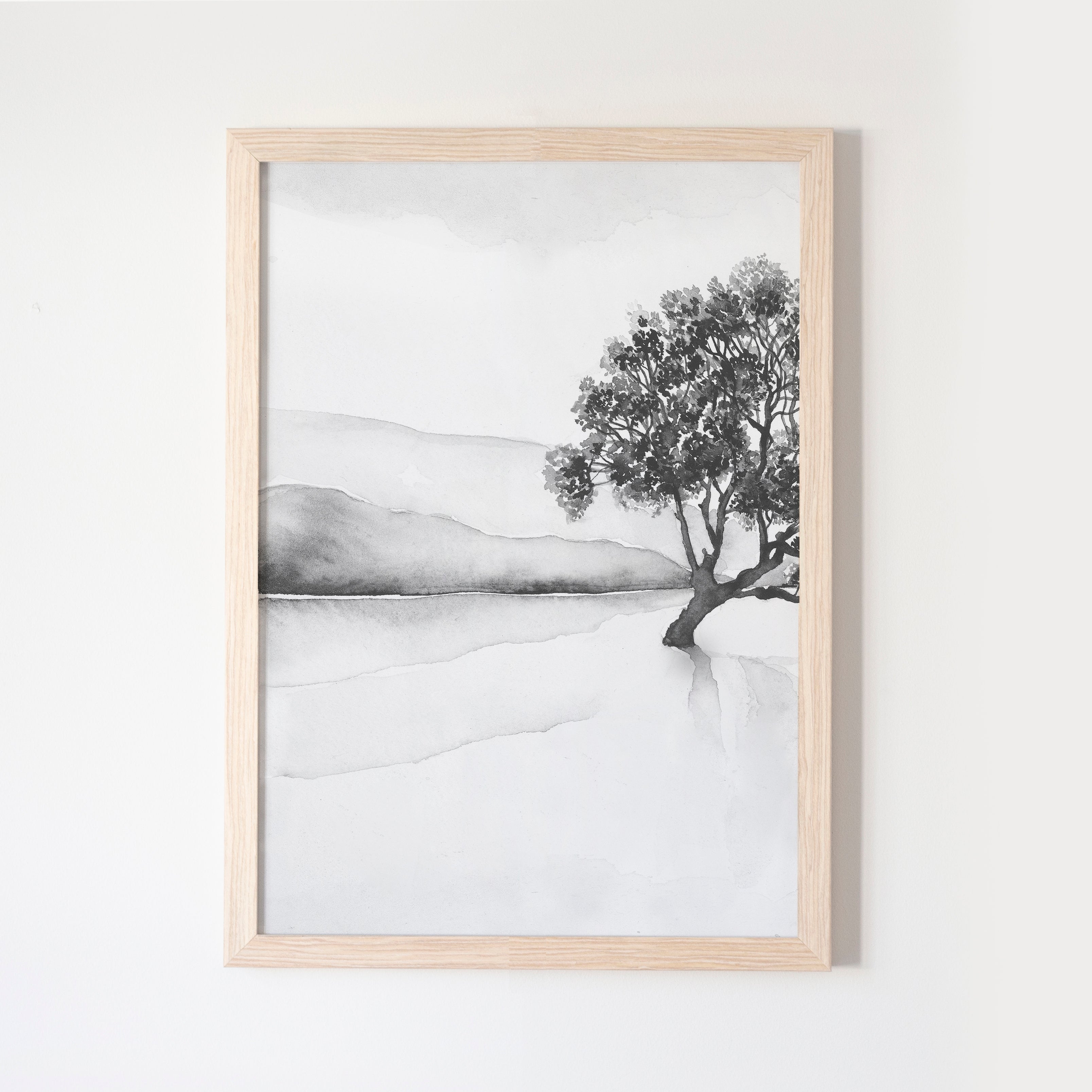 Our Lake Wanaka I is an ode to some of our most incredible mountains and landscapes. Gentle palettes and soft defining shapes, captured through watercolour.