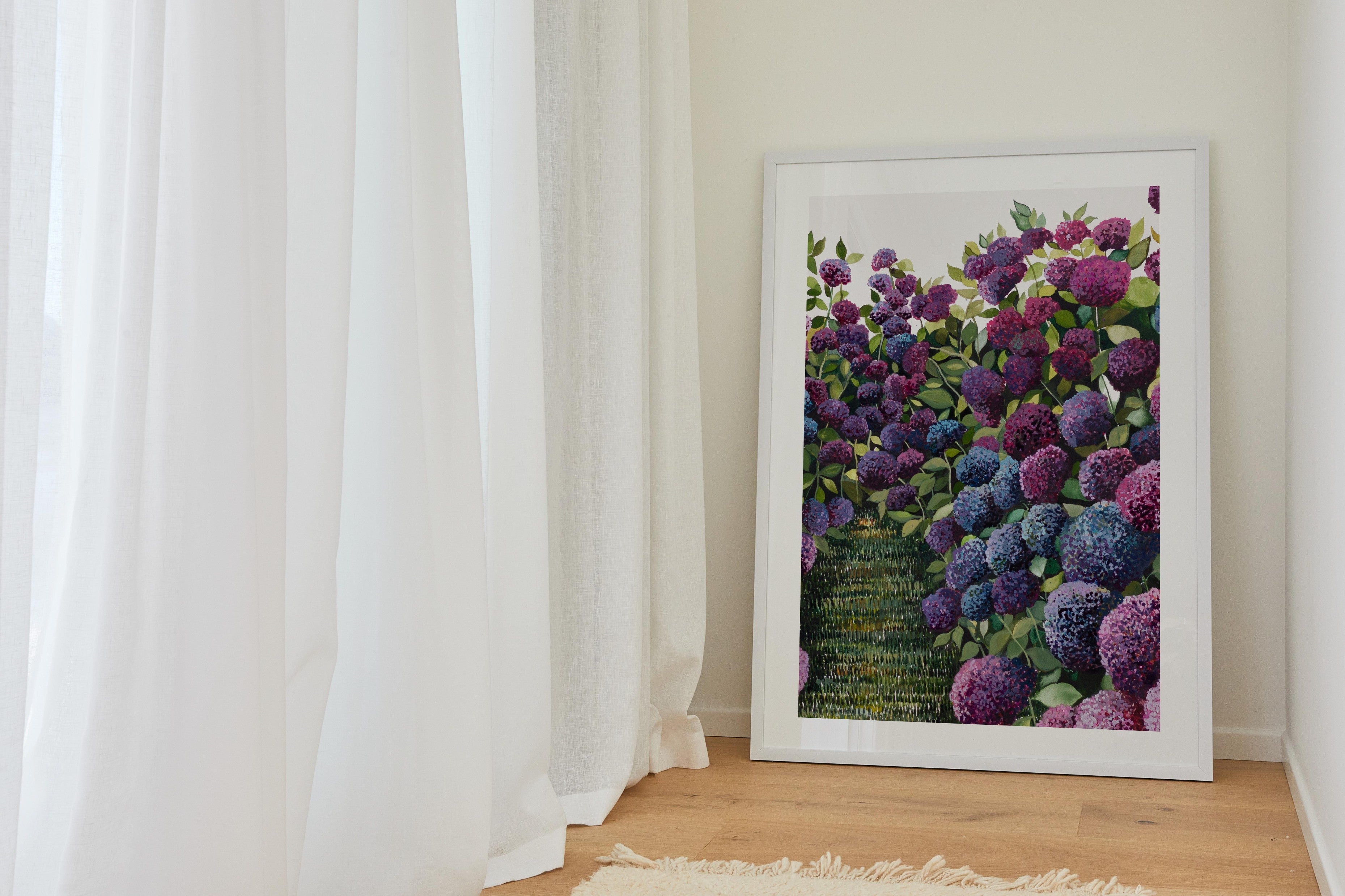 Our Lilac Hydrangea IV is one of our vibrant floral pieces, infused with pops of colour, to brighten up your walls