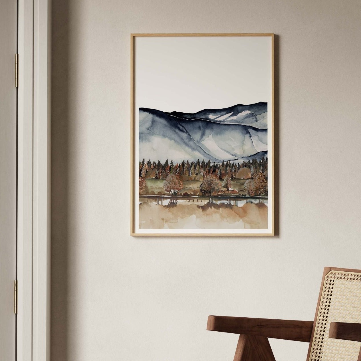 Enchanted by the mesmerizing turquoise tones of the lake, and harmonized with the earthy hues of the surrounding mountains and nature, this artwork encapsulates a serene ambiance, perfect for enhancing your living space.