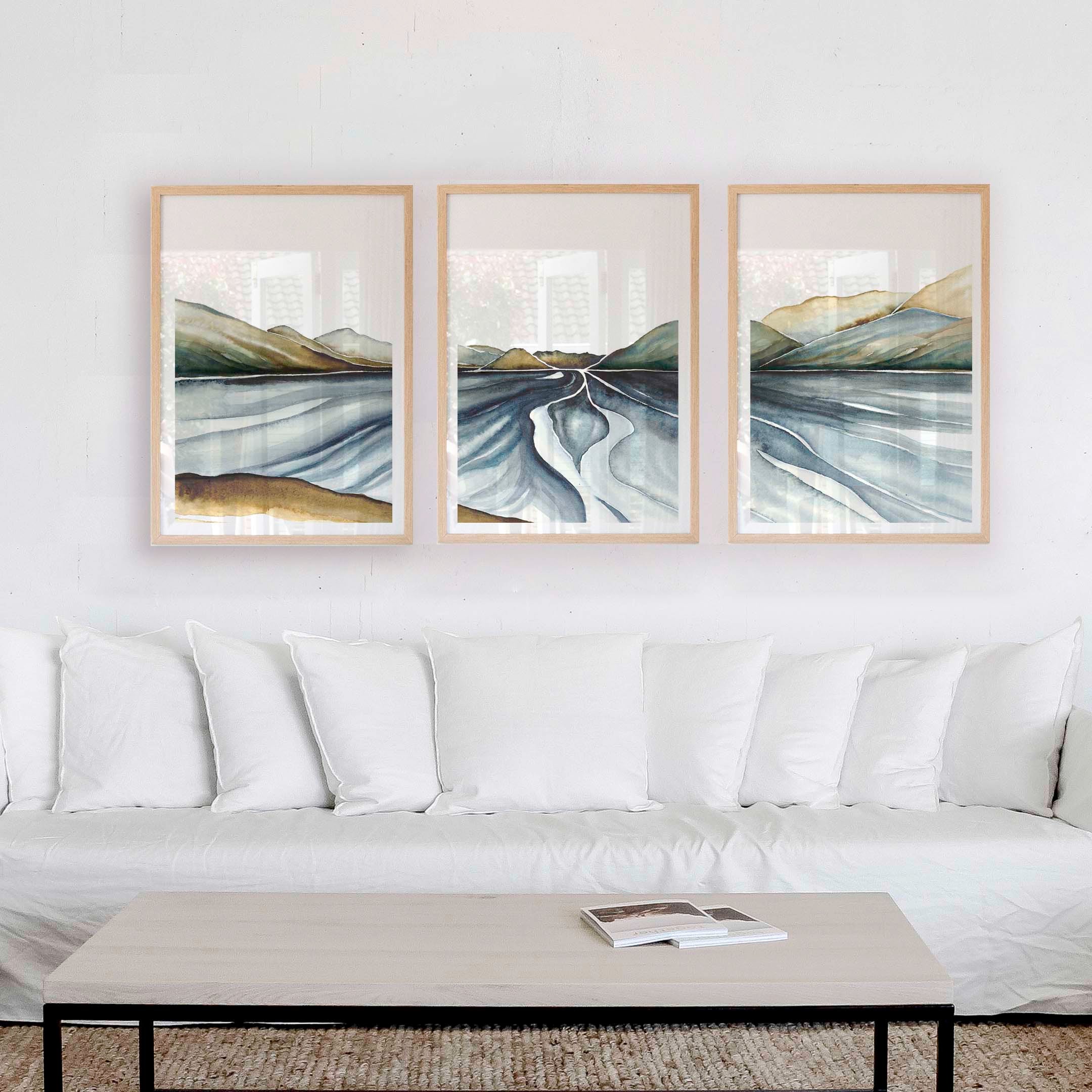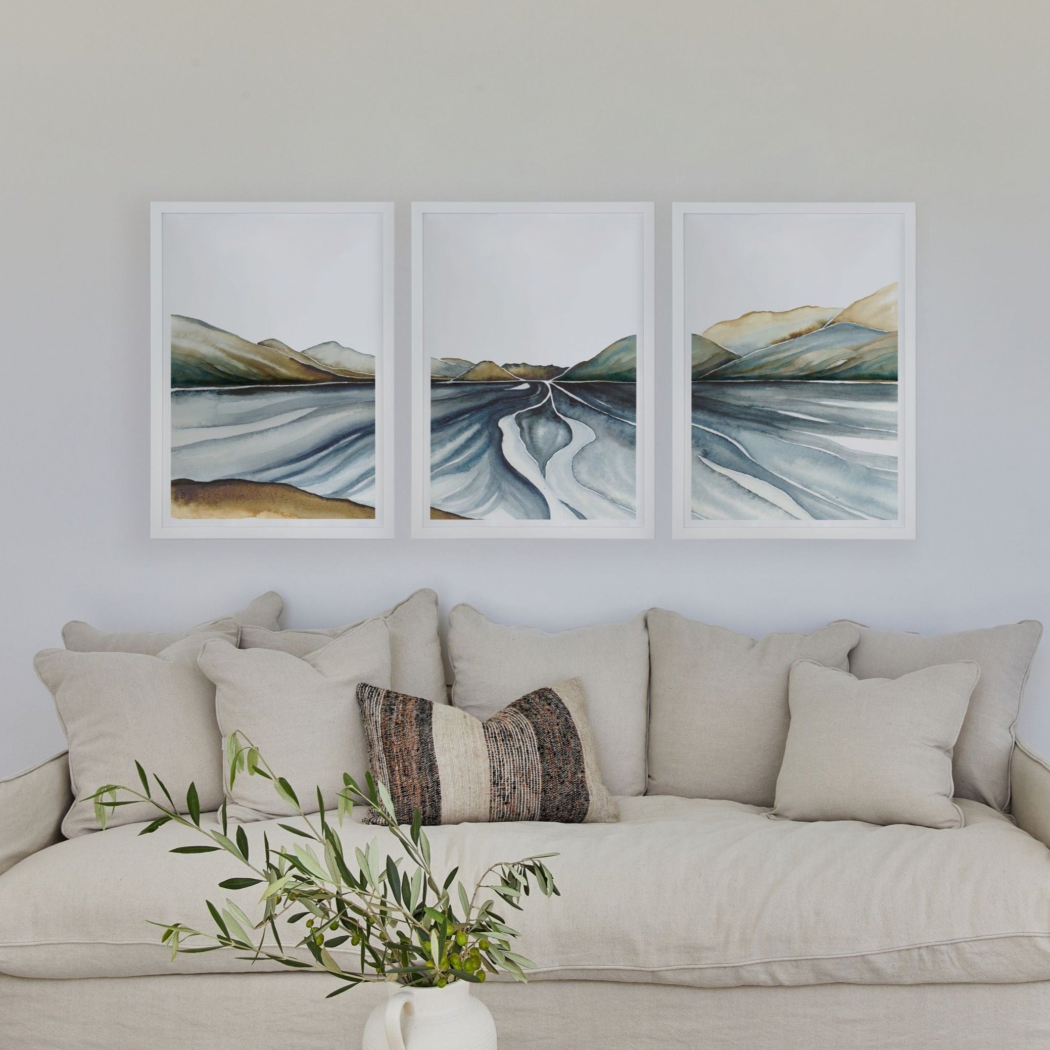 Our Waimakariri Triplet is an ode to some of our most incredible mountains and landscapes. Gentle palettes and soft defining shapes, captured through watercolour.. This pair includes: Waimakariri I, Waimakariri II, Waimakariri III Uniquely designed by Leden, this piece is crafted to create the perfect backdrop for a range of interiors.